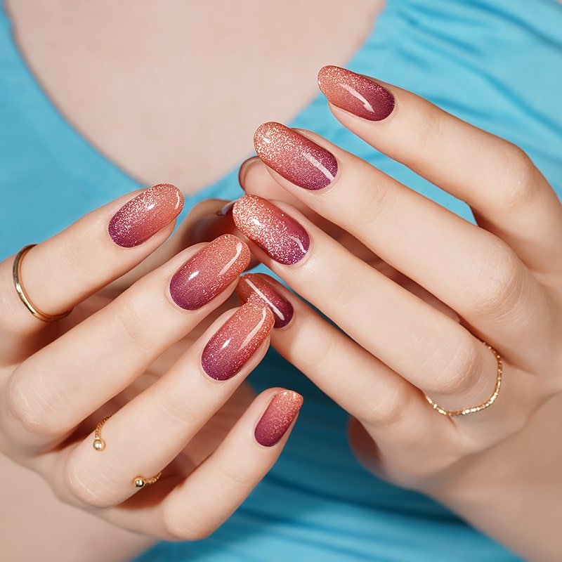 Réchauffez votre style avec nos bandes de vernis gel pailletées terracotta. Leur teinte chaude et ensoleillée, rehaussée d’un éclat scintillant, sublime vos ongles avec élégance. Faciles à appliquer, elles offrent une manucure lumineuse et pleine de caractère.