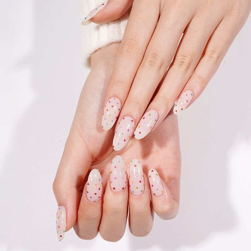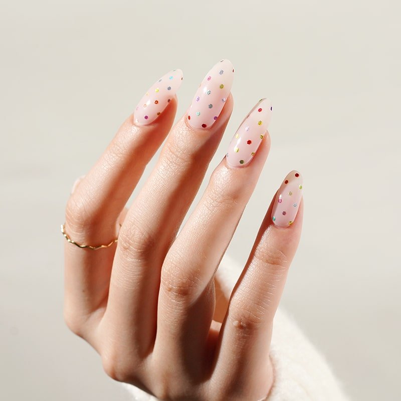 Osez l’originalité avec nos bandes de vernis gel à petits pois multicolores. Faciles à poser et ultra brillantes, elles offrent une manucure pleine de pep’s et ludique en quelques minutes. Un look pétillant à adopter sans hésiter !