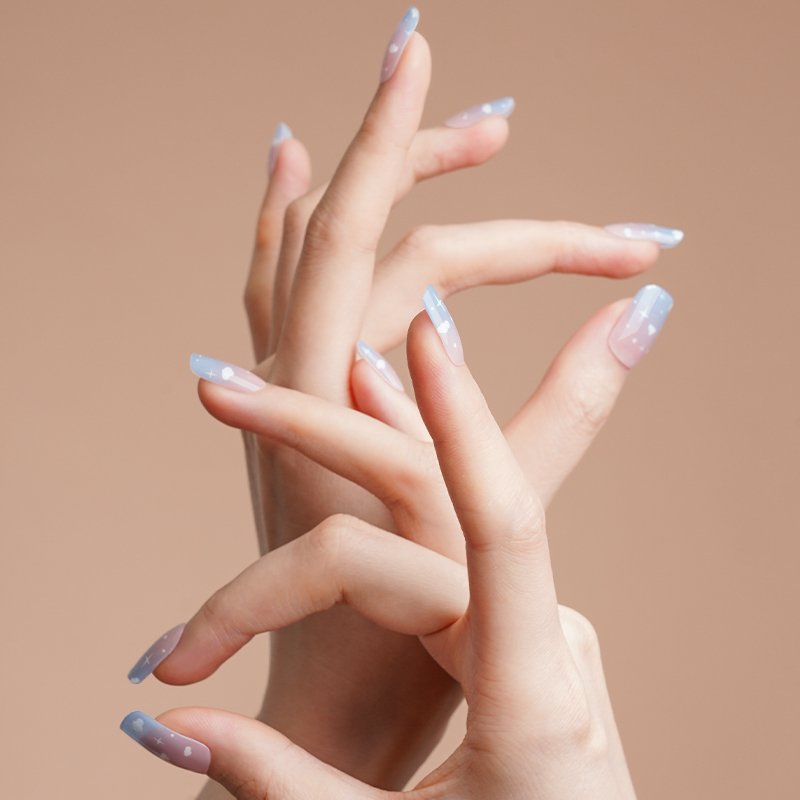 Faciles à poser, ces bandes de vernis gel UV nuageuses offrent un style unique et lumineux, sans effort.