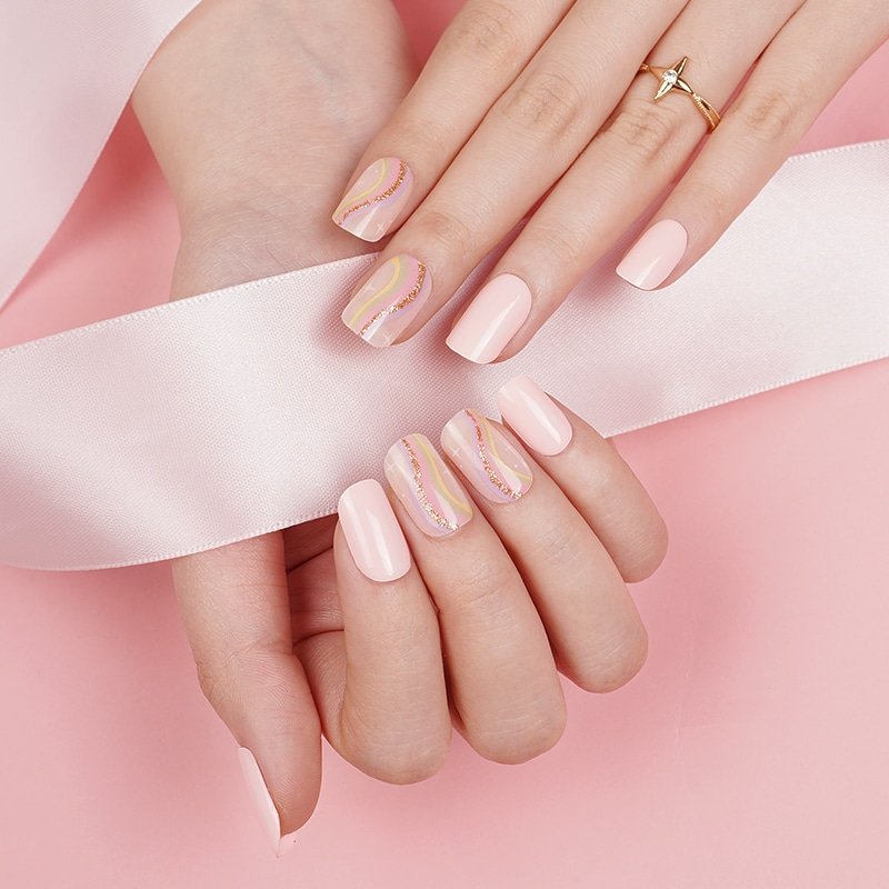 Prêtes à l’emploi, elles se collent directement sur l’ongle, puis se durcissent sous lampe UV pour un résultat lisse, brillant et durable.