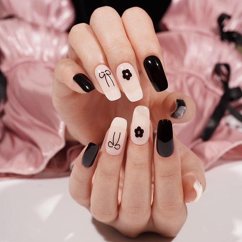 Exprimez votre style avec nos bandes de vernis gel dépareillées noir et blanc ornées de motifs nœud, fleurs et cœur. Un mélange graphique et raffiné qui allie finesse et fantaisie. Faciles à poser, elles offrent une manucure originale, tendance et pleine de charme.