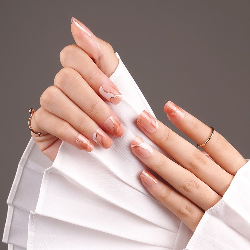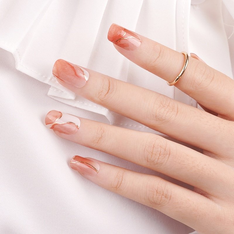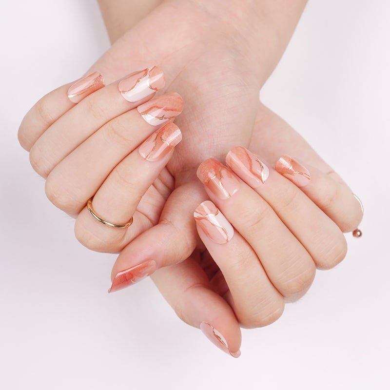 Adoptez l’élégance minérale avec nos bandes de vernis gel effet marbré orange terracotta. Faciles à poser et sans séchage, elles offrent une manucure unique, lumineuse et pleine de caractère. Un effet marbré chic pour des ongles au style raffiné.