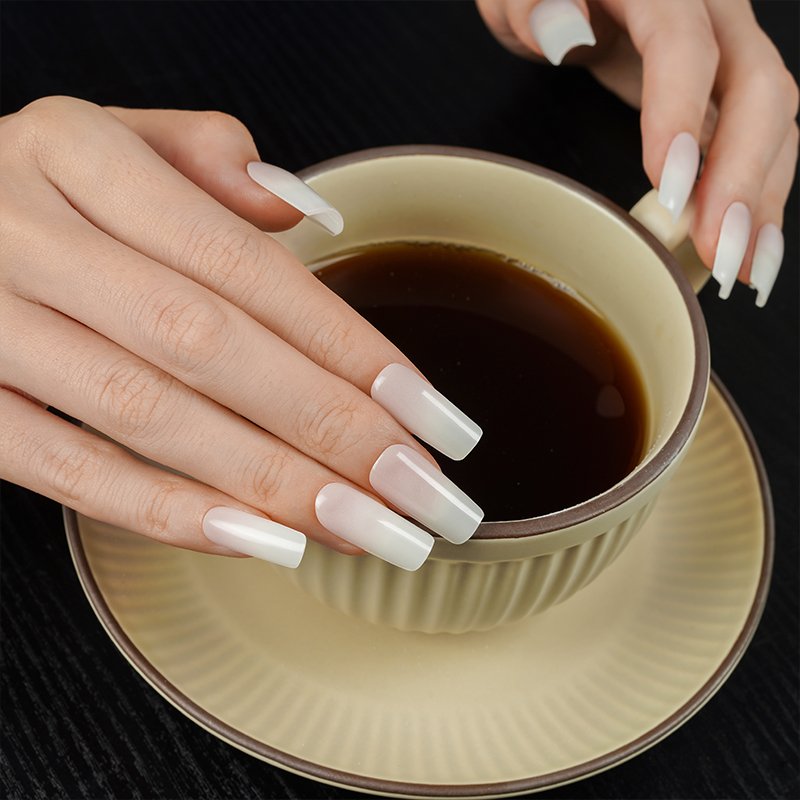 Une manucure gel UV dégradée, brillante et intemporelle — simple à poser, durable et irrésistible.
